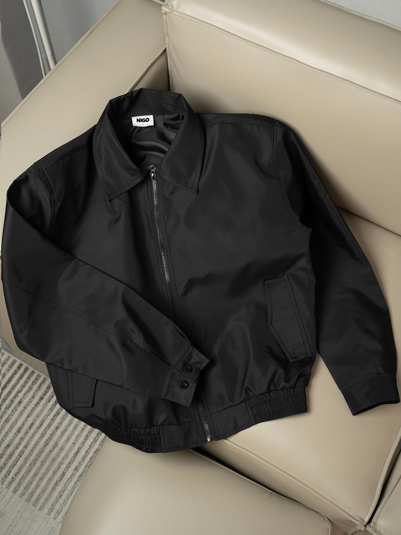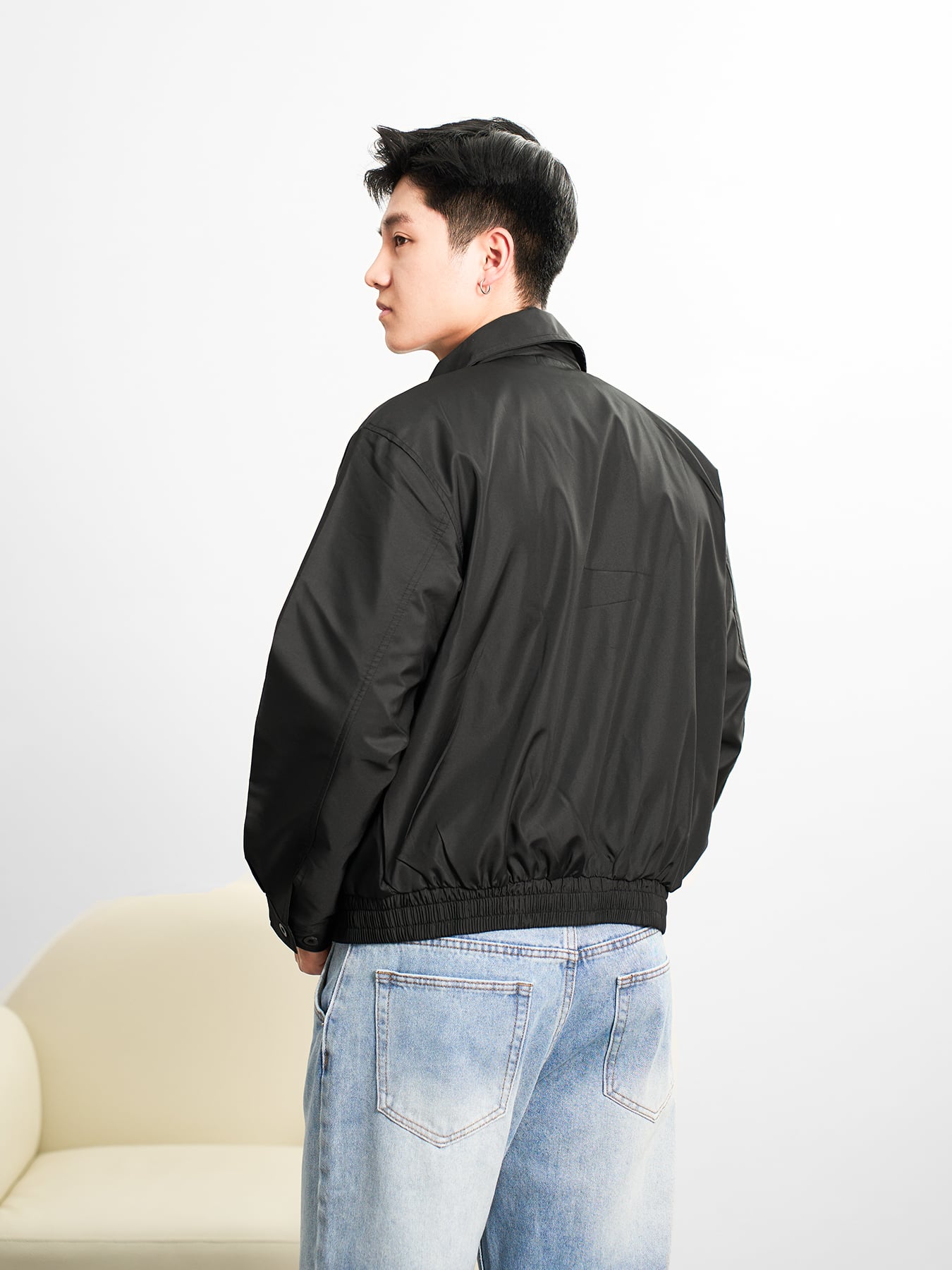 Áo khoác dù boxy đen basic