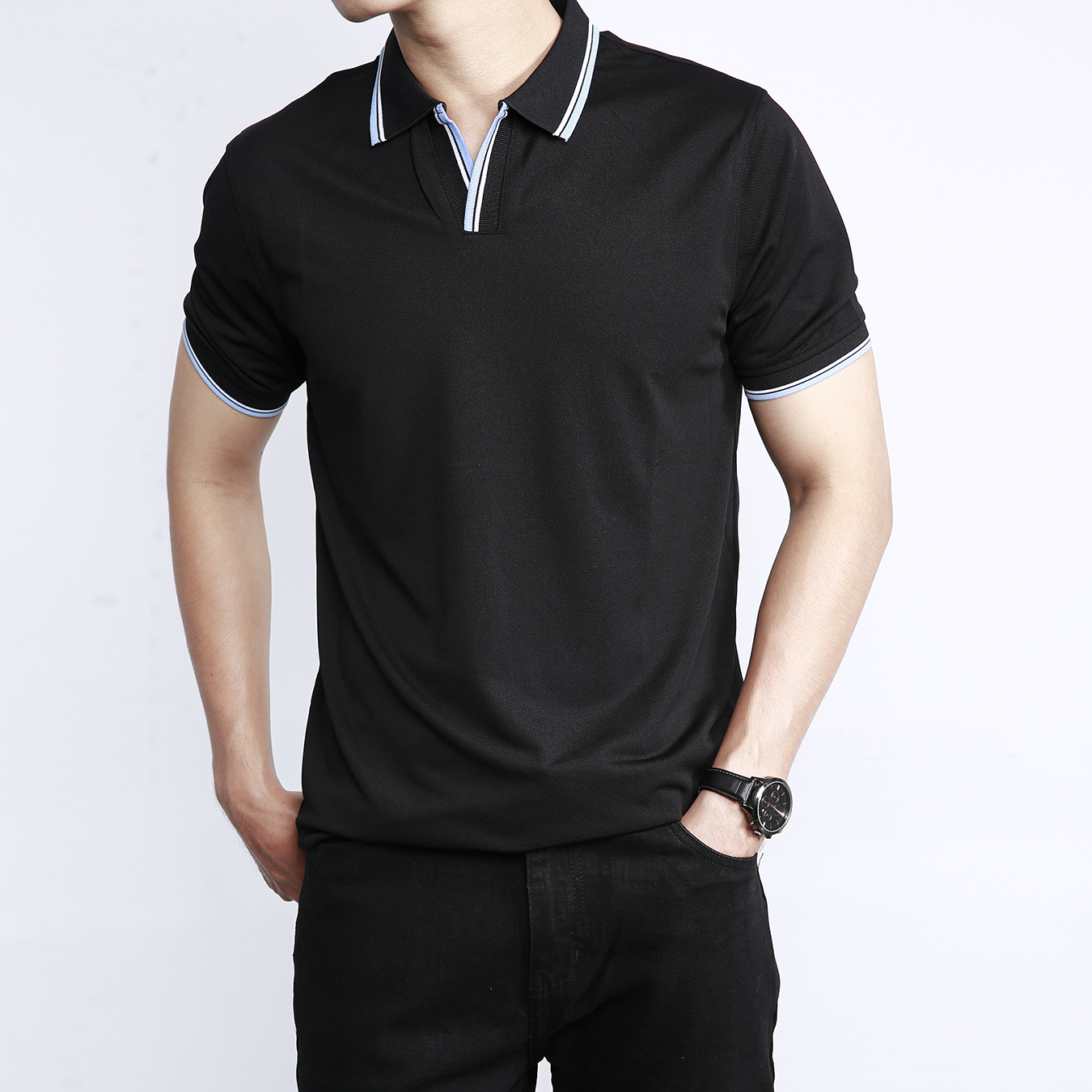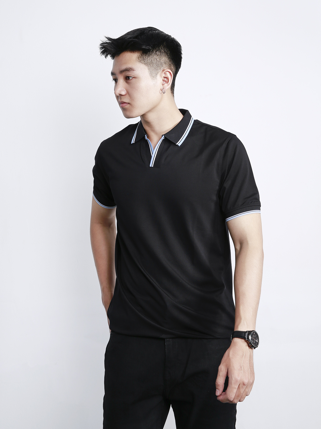 - Áo polo cổ V đen PL11